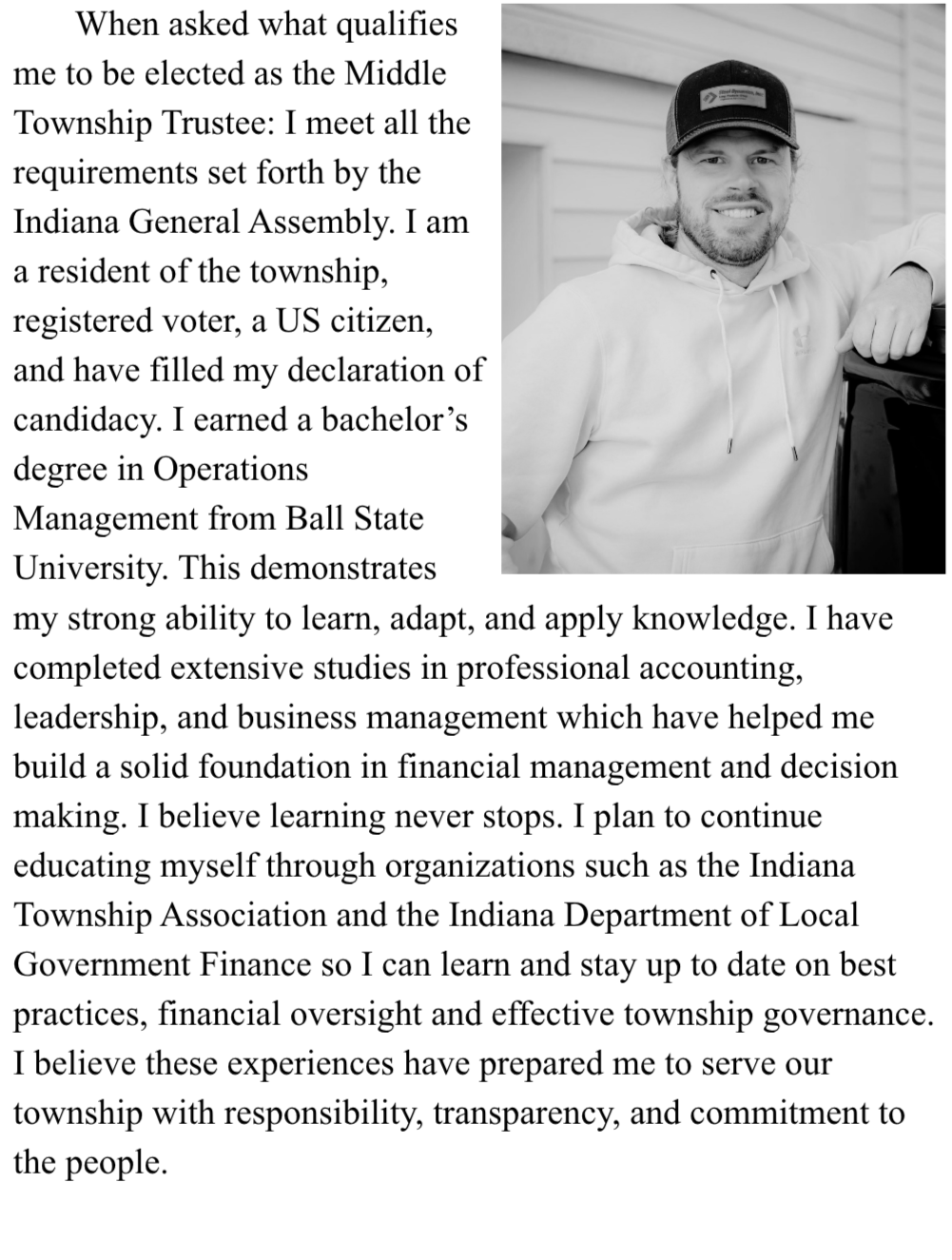 INTERVIEW INTERVIEW KYLE STEINMETZ - RMIDDLE TOWNSHIP TRUSTEE Courtesy of the Republican Primary Election Guide and Kyle Steinmetz’s Facebook page